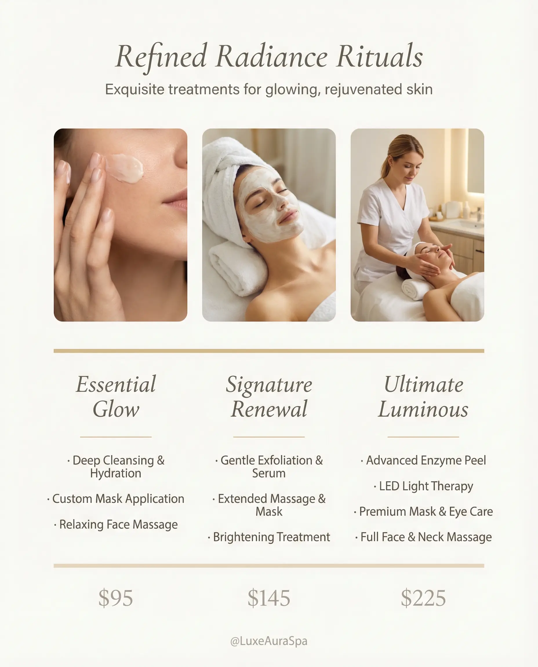 Posts that actually bring in clients. Service breakdowns, benefit lists, pricing showcases, and schedule cards that turn followers into buyers.